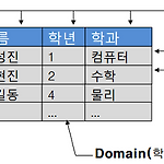 관계형 데이터베이스란? 관계형 데이터베이스란 정형화된 테이블로 구성된 데이터들의 집합체를 말합니다.30년 전부터 지금까지 가장 많이 사용되는 데이터베이스이며,데이터들의 관계 조작을 통해 원하는 데이터를 뽑아낼 수 있습니다. 관계형 데이터베이스의 구조 테이블의 열에 속하는 데이터들의 집합을 Attribute라고 합니다.각 Attribute가 가질 수 있는 값의 집합을 Domain이라고 합니다.그리고 테이블에서 행에 속하는 데이터들의 집합을 Tuple이라고 합니다.하나의 Tuple은 각 Attribute들로 이루어져 있습니다.이러한 Tuple이 모이면 하나의 테이블이 됩니다. 이를 Relation이라고 합니다.그리고 Relation이 모여 Database를 이루게 됩니다.